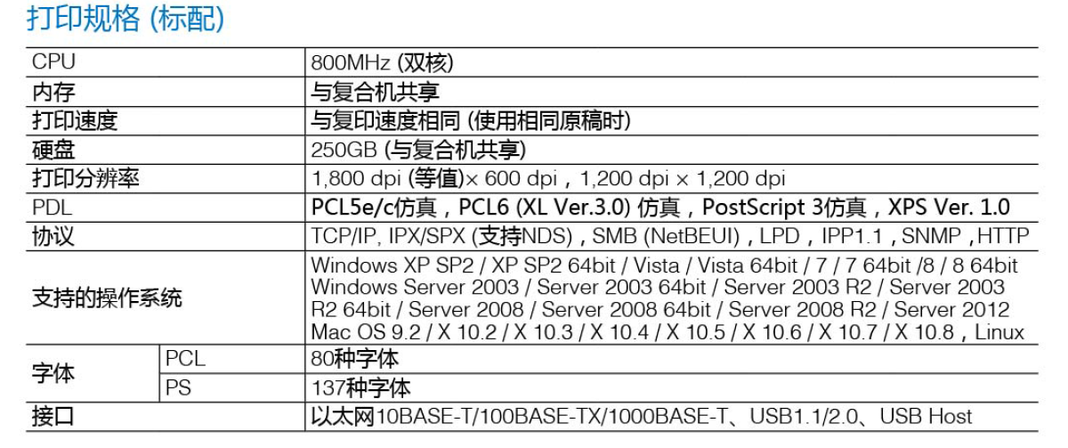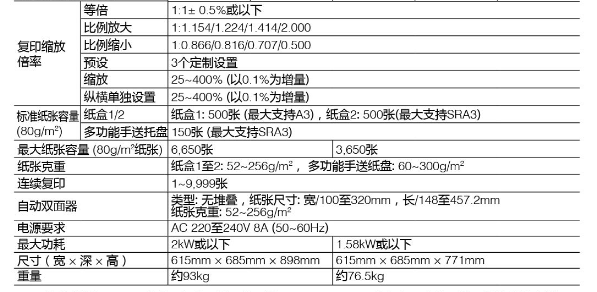 主要功能:黑白打印、黑白复印、彩色扫描最大幅面:SRA3复印速度:36页/分钟商家建议:推荐月用量大、要求机器运行稳定、且无彩色打印需求的客户选用,特别适合大企业、学校、培训机构等单位使用
